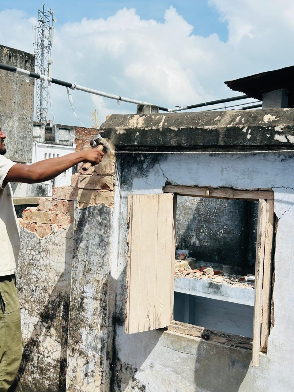 It started almost instantaneously. By the time I woke up, the clouds had all wrapped around the sky’s boundaries, and the window through which I watched my childhood twice was broken into a spoiled piece of wood. The work had begun. I saw the walls like aged soldiers unable to fight further, their bones softened. I eyed them like they were already sent into the morgue, breathing out flaky dust.